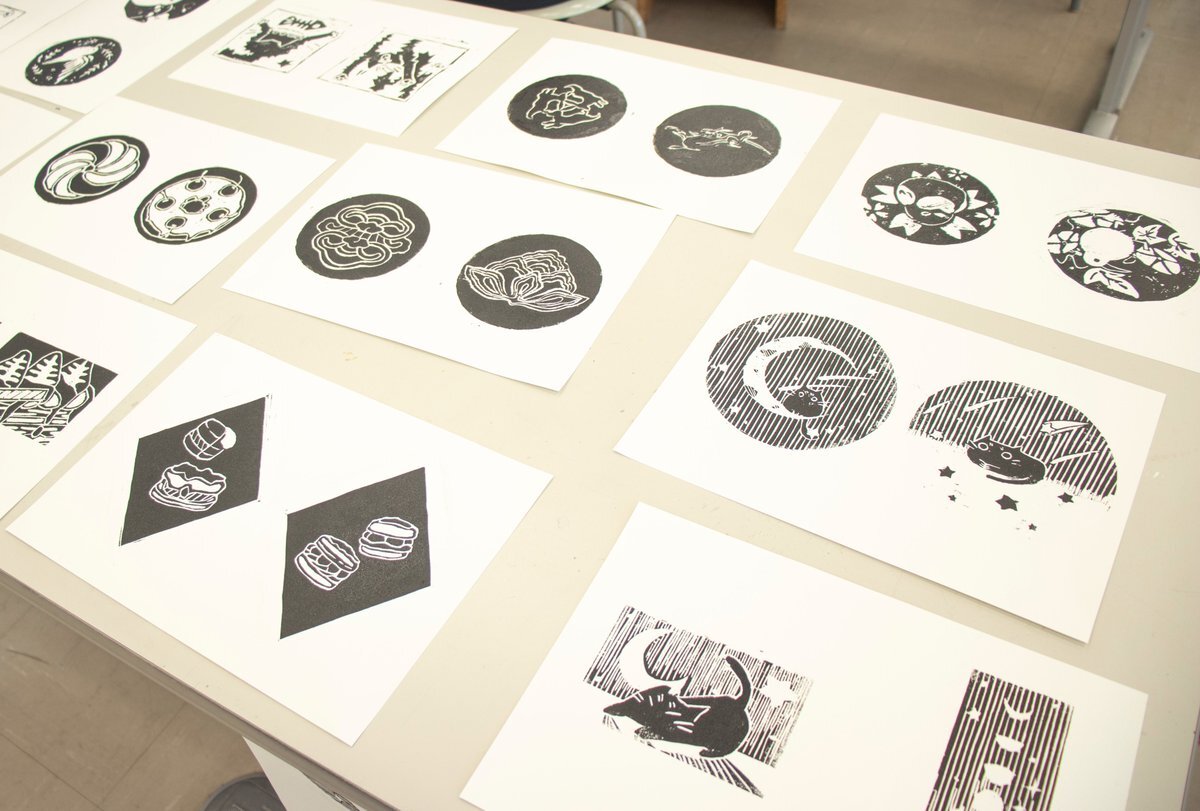 デザイン分野2年生 #手仕事 では #版画 の作業が終了👏 みんなで刷り作業! 版画ならではの温かい絵が並びます🌳 平岡先生、ご指導ありがとうございました✨ シルクスクリーン編へ続く… #文星芸術大学 #デザイン専攻 pic.x.com/nomWPiDSbp
