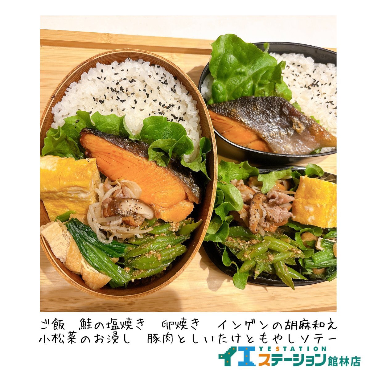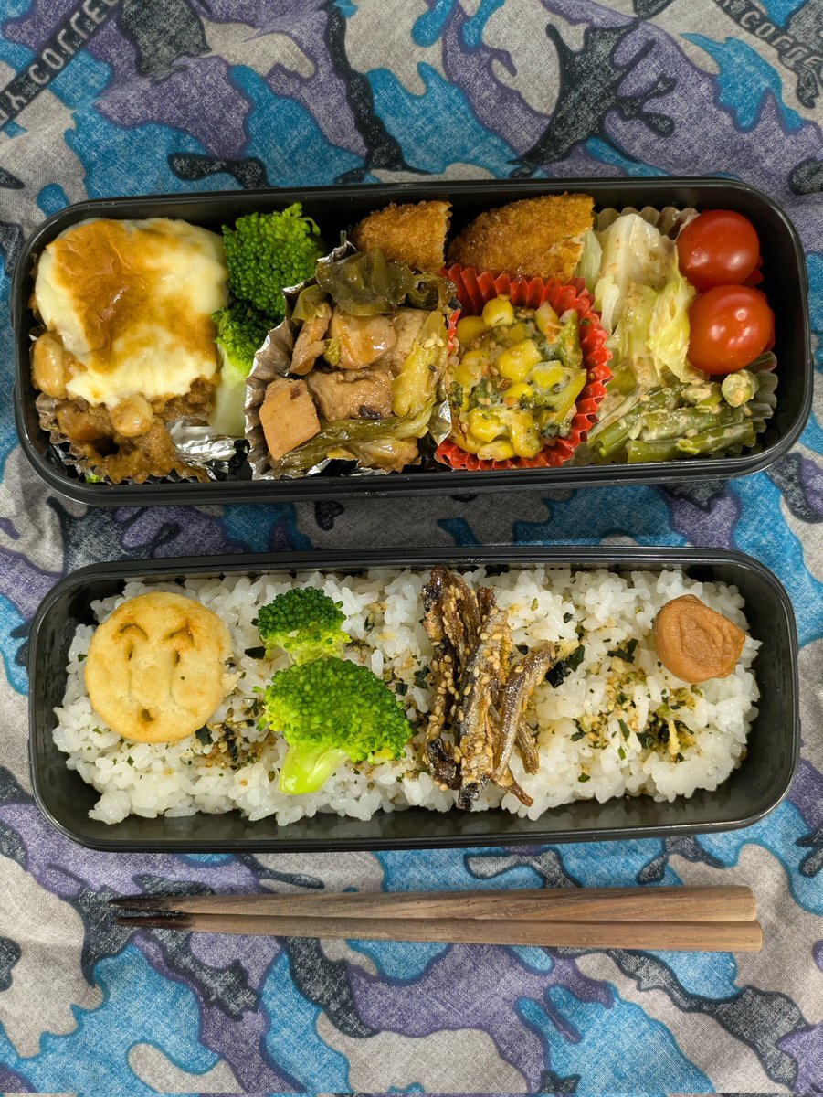 内外食のススメ(水) 今日の献立は、壱ノ段-焼売、小松菜お浸し、チキンナゲット、豚トロ塩麹焼 弐ノ段-小海老佃煮、数の子山葵漬け、白菜キムチ 参ノ段-トマトサラダにカニかま添えて🍱 #手作り弁当 pic.x.com/4hZbG81CmK