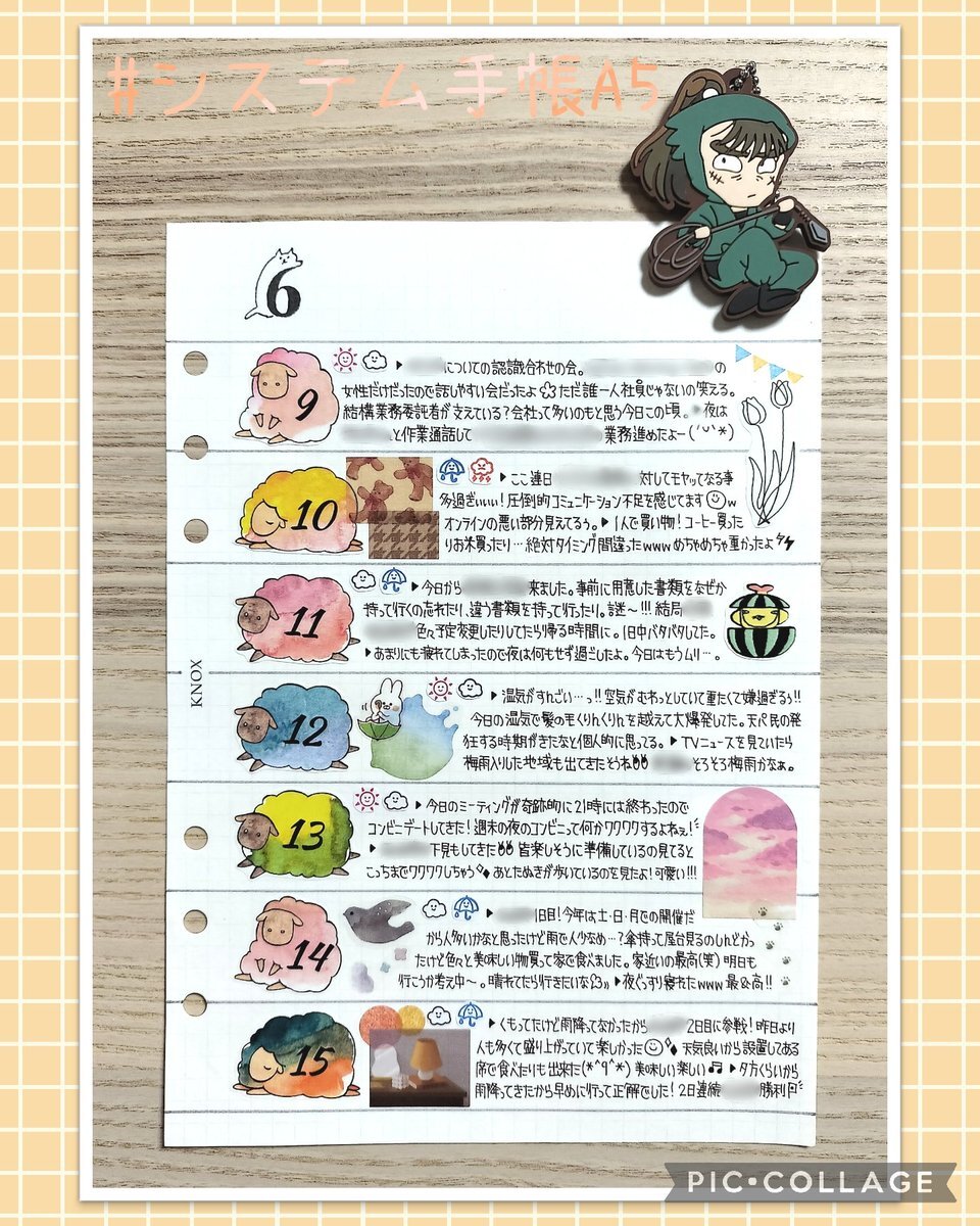 2025.06.09~15 このあたりから湿気盛ん。 天パなので大爆発しました🙄 #手帳ゆる友 #手帳の中身 #文好部 #おうちノート部 #みっちり手帳ライフの会 #システム手帳 #うた日付シート #もっちり手帳ログ pic.x.com/Nz52z8KnjE