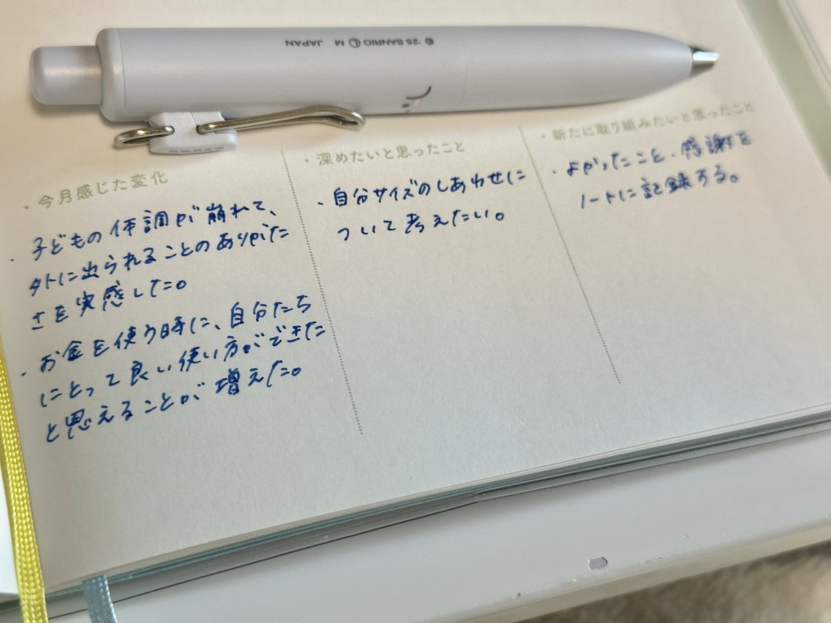 先月の振り返り。子どもの外出不安が発動してなかなか外に出られないことが多い月でした。外に出られることへの感謝が自然と湧いてきた。それとお金を使う時に「いい使い方ができたな」って思えることが増えました☺️12月は自分サイズの幸せについて考えたいな🫶#手帳の中身 #手帳ゆる友 #purelifediary pic.x.com/zBINSHB4qC