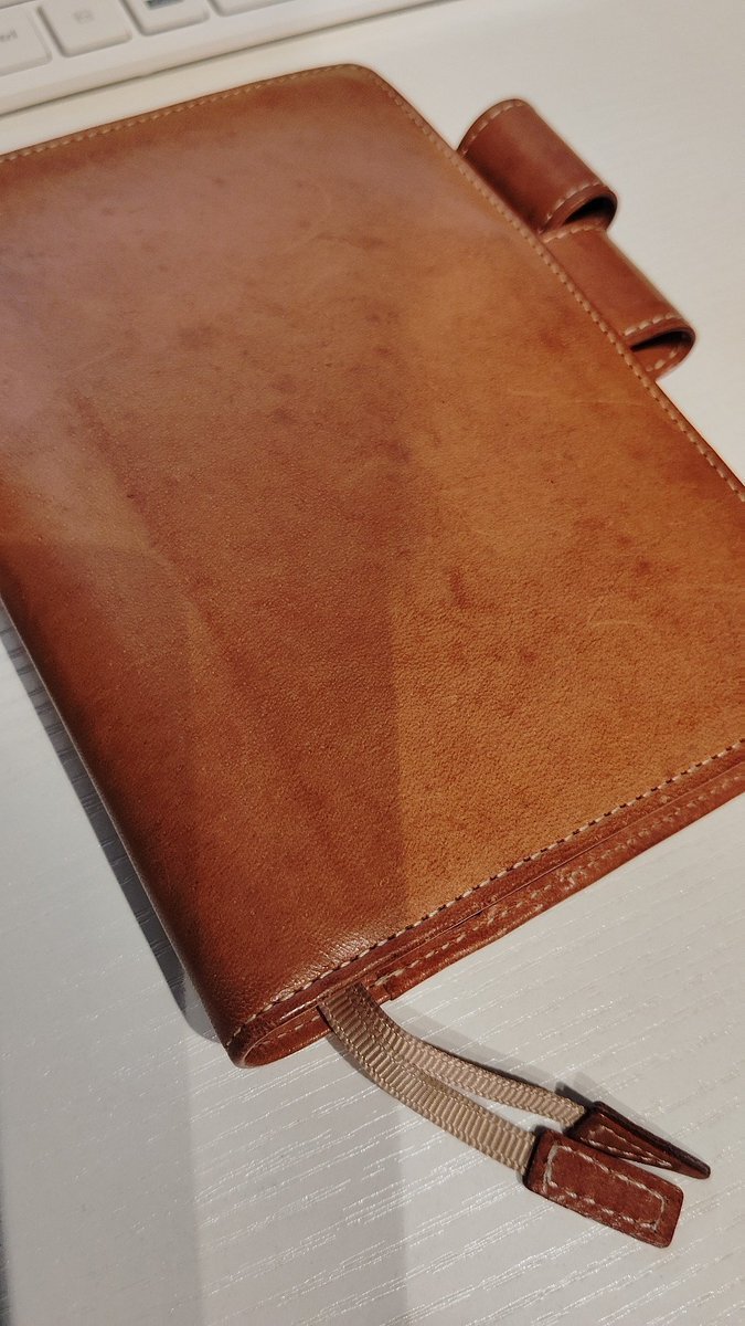 マンスリーはもう12月から使えるのでデスクに置いて使ってるのだけど、やっぱりスピンがないと不便なので作ってきた(*´꒫`*) 背表紙にある年号の箔押しは残しておきたかったので、スピンの上を結んで挟むタイプにしたよ。何年か前のブラウニー手帳の時みたいな感じ。 #手帳ゆる友 #ほほ日手帳HON pic.x.com/02tJPW2yOe