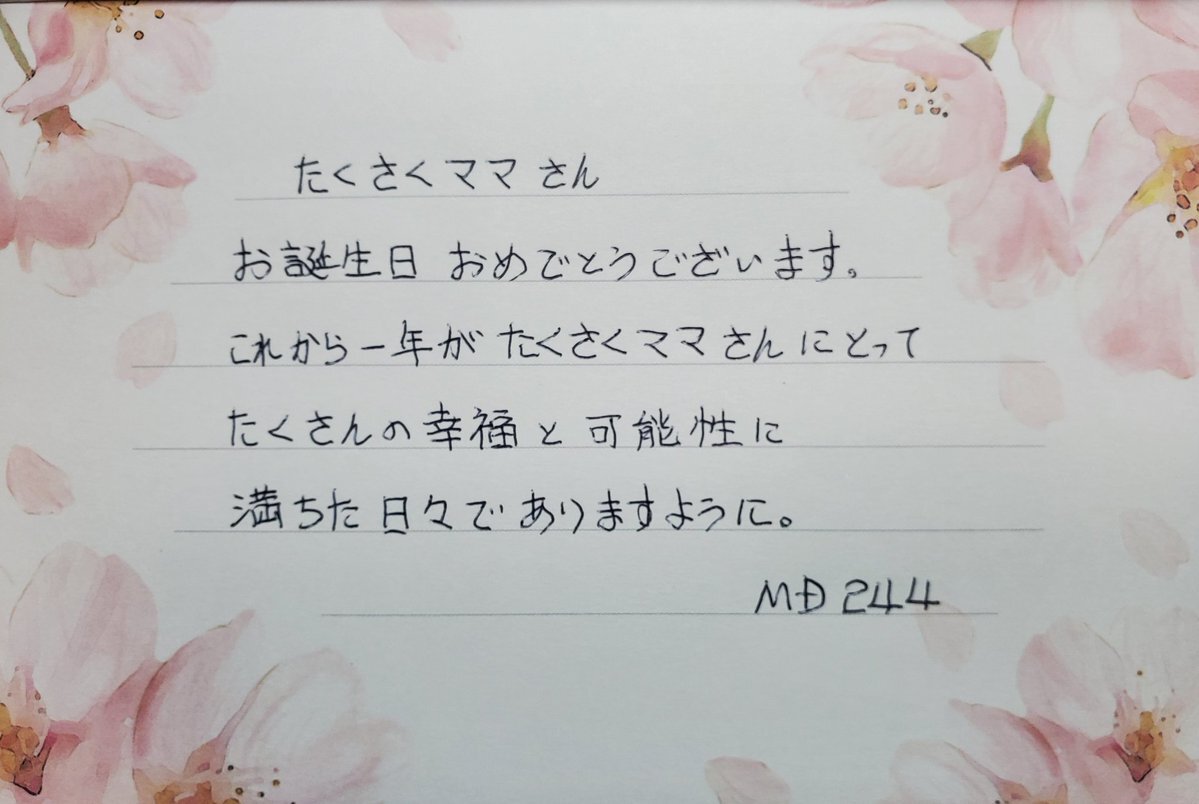 #手書きメモ✍️ #バースデーメッセージ🎂 たくさくママ(@murayamatyan)さん、 ㊗️Happy Birthday🎉🎂💐👏👏👏 今年もお祝いの手書きメッセージを書きましたので、送らせて頂きます🤗🎵 pic.x.com/bfNQxJoBN4
