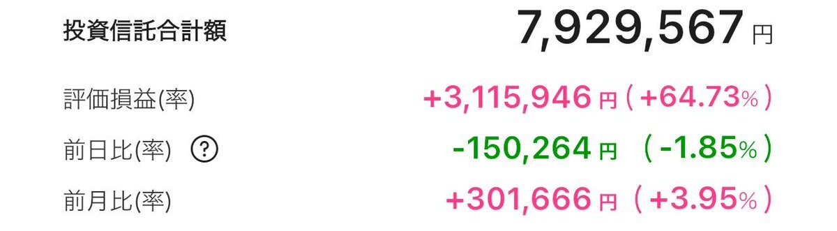 評価損益は+3,115,946円 合計は、7,929,567円 先週の時間外で-6%だった日経平均も 蓋を開けてみれば-2.58%程度のレベル 全然大したことない ちょっと期待したんだけどなぁ 残念だわ😭 #株クラ #投資初心者 #投資家さんと繋がりたい #投資家さんとつながりたい pic.x.com/xrfkF0r365