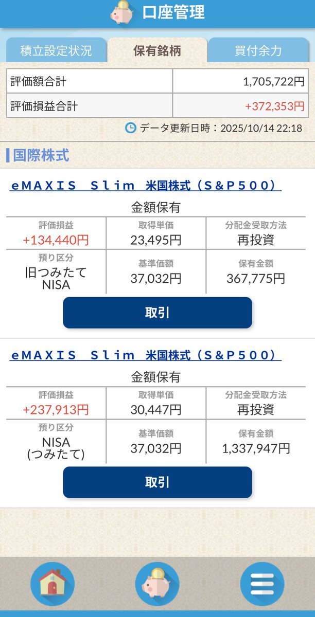 投資信託前日比−57,954円。 昨日が祝日じゃなければ本当はもっと下がるはずがここまでのダメージですんでくれて良かった。 しかし今夜からもどうやら下がりそうである。つまり魂の入金行いました!貯金崩して5万円追加!未来は明るいと信じて #投資初心者さんと繋がりたい #投資初心者 #コツコツ投資 pic.x.com/X4hSeUBKAn