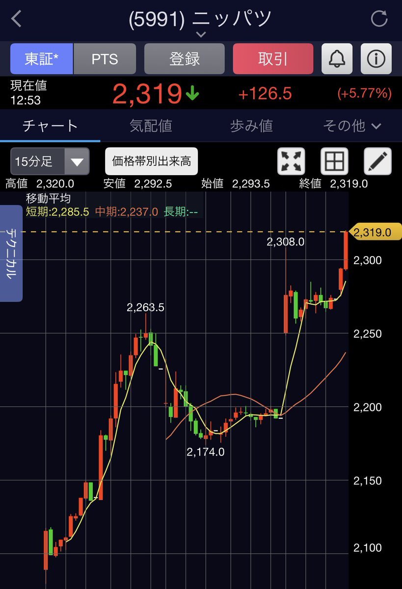 昨日の安値時点でニッパツを買っていた人おめでとう🎊 私の予想通り上がったねぇ😎 #投資OL pic.x.com/PMqdC7CR3X x.com/ayaka_chartroo…