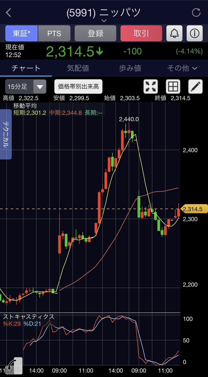 予想通り調整してますね📊 ニッパツは自分のロスカットラインに達したので一旦利確しました💰 ローツェは前場の安値でエントリーしたかったけど仕事のせいでエントリーできず😡 #投資OL x.com/ayaka_chartroo…