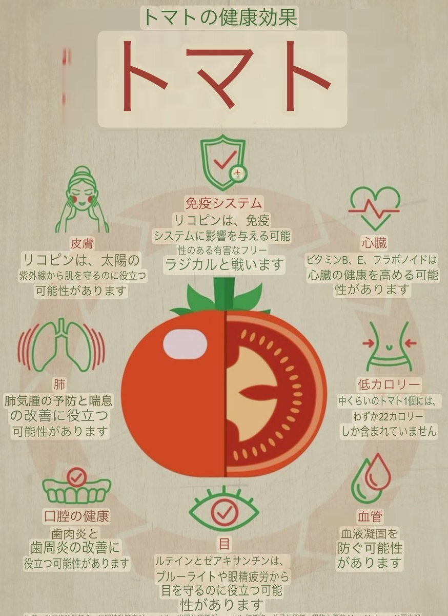 ¸.✿¨´’*°ꨄ (  夏の潤い果菜代表 ❥•♪♫¸¸.✿’ ┈┈┈┈┈┈┈┈┈┈ 🍅トマト(蕃茄 / Tomato) ┈┈┈┈┈┈┈┈┈┈ トマトは、世界中で愛される 「食べる美容液」🌈ᵕ̈* 南米原産のこの果菜は 日本でも江戸時代から栽培され 薬用的に用いられてきました。 赤い果肉に含まれる「リコピン」は