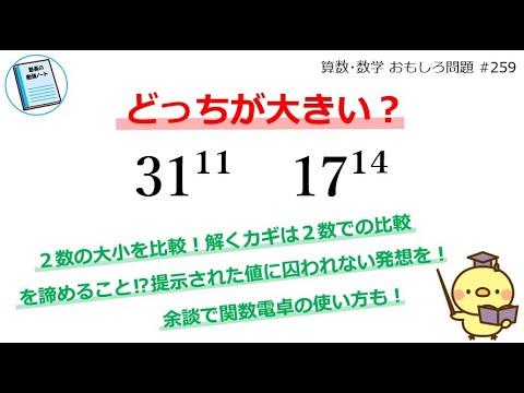 2数の大きさを比較する問題!必要な発想は「この2数で比較するのは諦めよう」と思うこと、なのかな。無理なもんは無理、なので他の切り口で考えよう!っていう切り替えが大事な気がします!余談で関数電卓の使い方や見方なども話しています! #指数 #おもしろ問題 youtube.com/watch?v=xLMIU8…