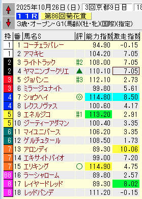 菊花賞の指数は割と普通かと思ったけど、ヤマニンブークリエを強めに推してきたのは面白いな。ショウヘイからの3連複流しでいいかな。10点でもガミはなさそう。 #競馬 #指数 pic.x.com/KwM38CB8c1