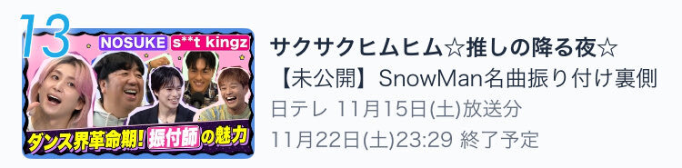 / 🌸🍄TVer配信スタート!! 未公開含む配信限定版👀 \ 💃世界中からオファーが殺到する 日本人『振付師』を深掘り!! ⚠️TVer限定の配信完全版では Snow Manの名曲振り付けの裏側も👀!!✨ 🌸『サクサクヒムヒム』🍄 佐久間大介(Snow Man) 日村勇紀(バナナマン) shoji(s**t kingz)