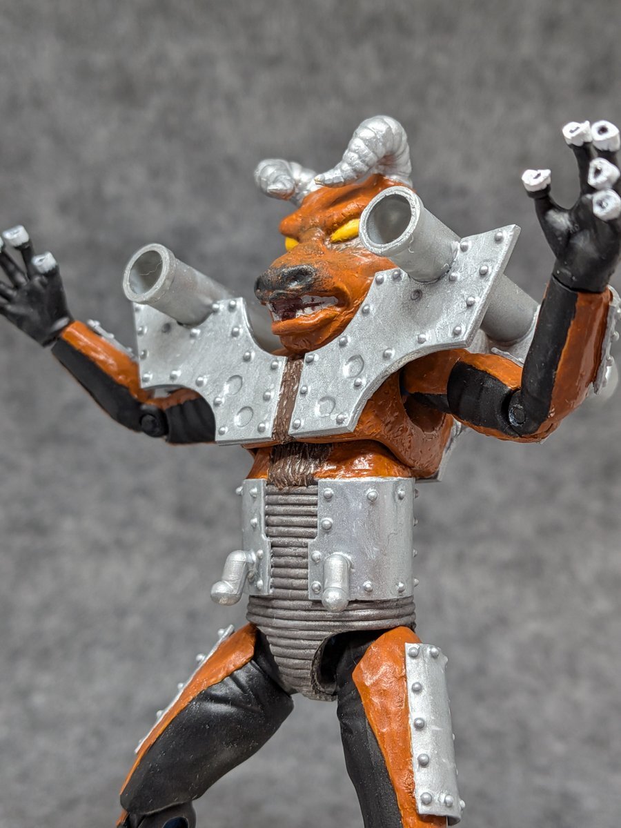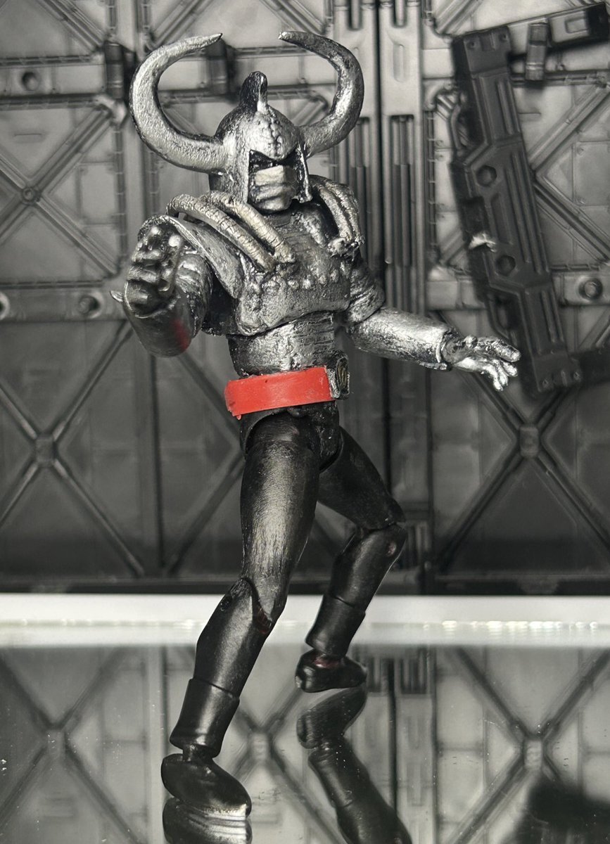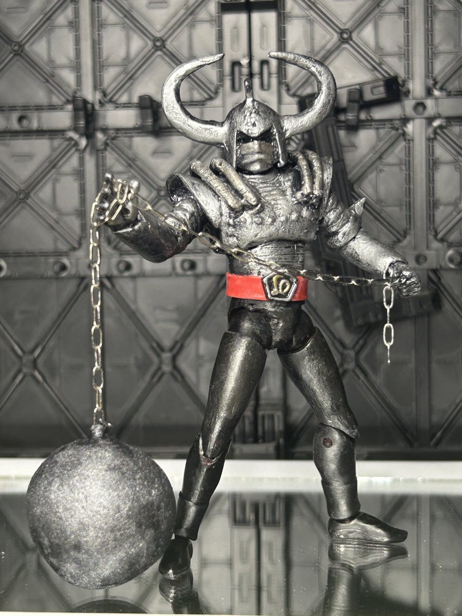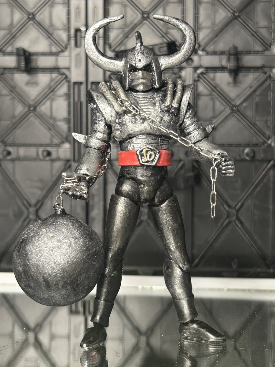 鋼鉄参謀完成 もう商品化は望めないから、超動エースをベースに改造 鉄球は紙粘土で軽量化したけど、もうちっと大きくした方がよかったかな🤔 #掌動 #SHODO #仮面ライダーストロンガー pic.x.com/IUMyqSuFsV