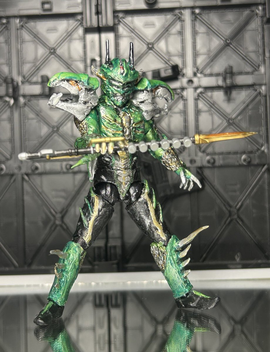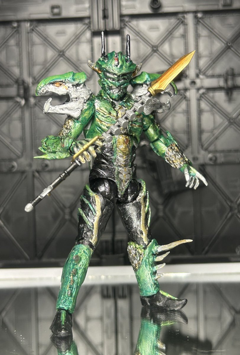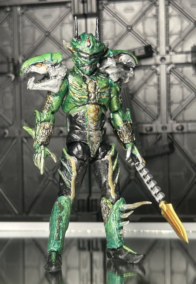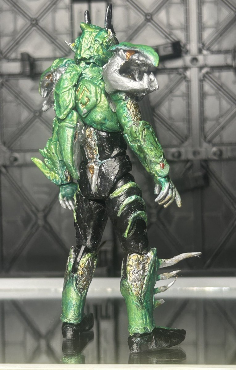 続いて掌動Exceed 仮面ライダーバッファのリペイント完了です。 ギーツに登場するライダーの中では好みの デザインなので楽しくリペイントできました。 やっぱり造形が良いと塗装が映えますなぁ…😊 #掌動 #掌動Exceed #仮面ライダーギーツ pic.x.com/Kmi7koBLz4