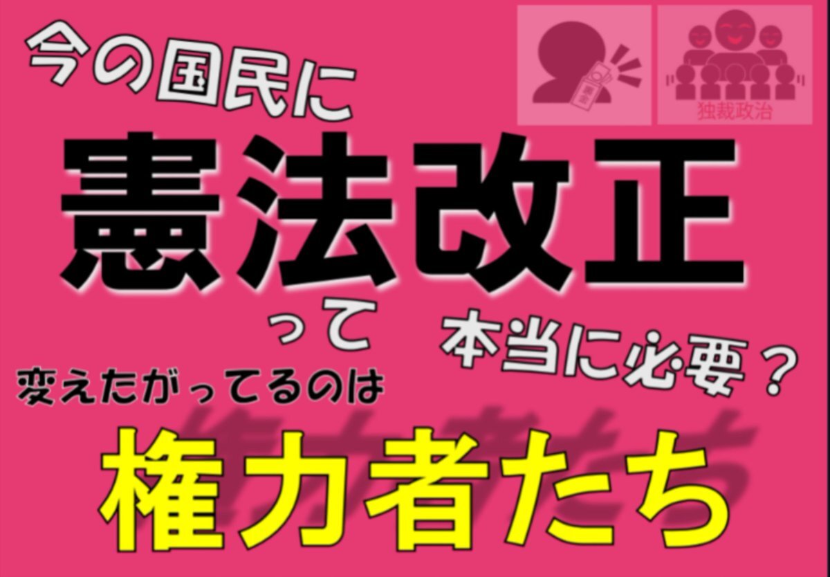 憲法のアップデート?? 今の日本国憲法と自民党の改憲案の内容を知ったら、改憲したい国民なんているばずがない。 人権を奪われ、一部の権力者の為に自分の人生を犠牲にすることを強いられる憲法に変えたいって、誰が思う? 雰囲気に乗せられて自分の権利を自ら手放すな。 #憲法変えるな憲法守れ