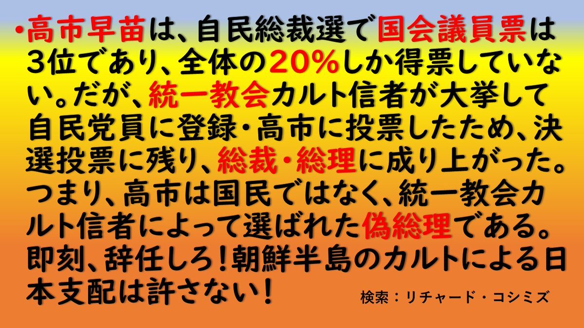 T1教会高市政権の恐ろしさに気付いていないのは、大人達と一部の若者達だね。 #改憲 #緊急事態条項 #日中戦争 #高市早苗 #統一教会 #ディープステート #リチャード・コシミズ shin-sourai.jugem.jp/?eid=27