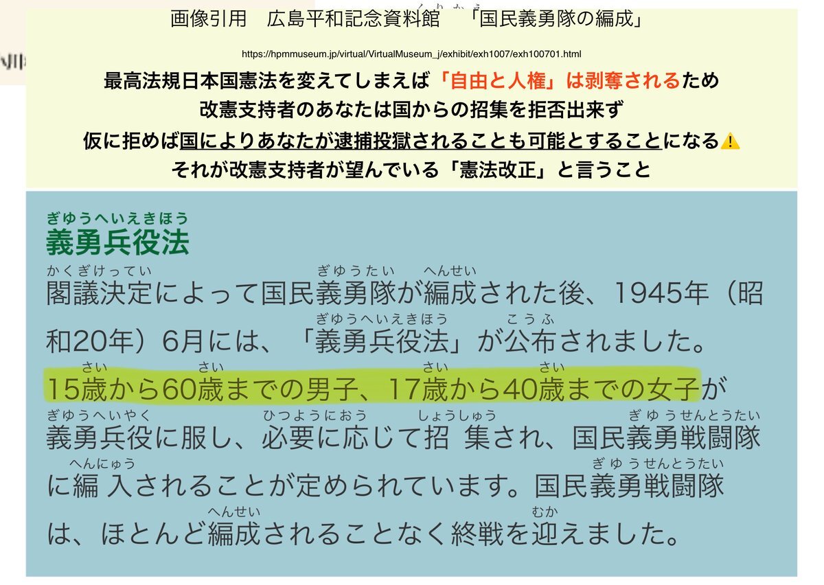 改憲は茶番戦争に🇯🇵人を巻き込むことが主目的⚠️ 当該🔗を確認して「戦争が茶番」と言う事実を理解しましょう💡 ⬇️アメーバオウンド the-way-of-christ.themedia.jp/pages/5205626/… 憲法改悪で再び可能となる【義勇兵役法】を確認🚨 ⬇️画像引用 hpmmuseum.jp/virtual/Virtua… x.com/nx_xxn814/stat…