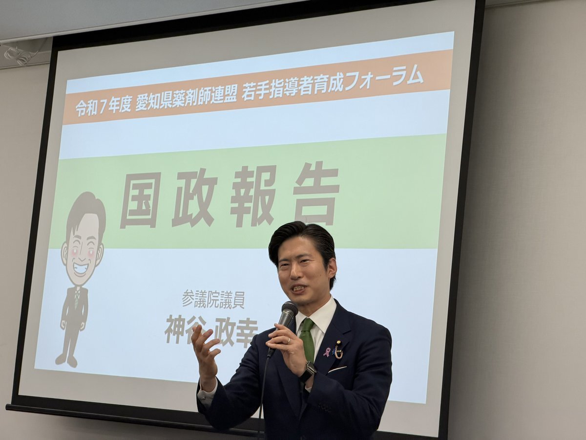 愛知県薬連盟の若手フォーラムも終盤に。 神谷まさゆき厚生労働大臣政務官も駆けつけられました! 国政報告と共に現在の薬業界を含む医療・福祉の現状と課題について。 #神谷まさゆき #厚生労働 #政務官 #愛知県薬剤師連盟 #愛知県薬剤師会 pic.x.com/C39pdD2WwC