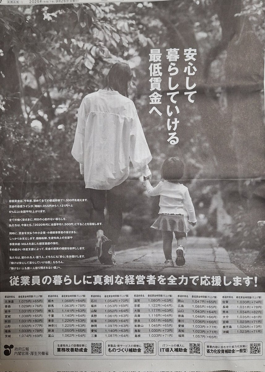#政府広報 今年も働く、 新人「後期高齢者」  生活のために働く半世紀前の若者や、非正規雇用者、女性たちに取って この「最低賃金」は生活出来る金額ですか? #企業献金で潤う裏金自民 pic.x.com/q0HZkluzUh
