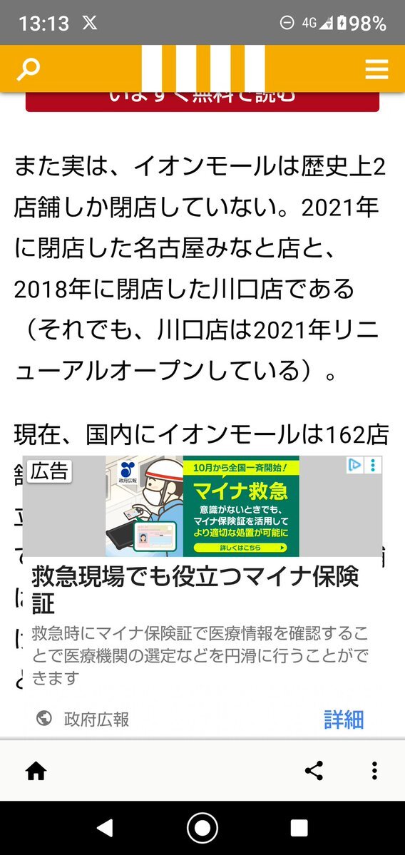 この政府広報の広告ウザいし迷惑なんだけど 記事の半分近く気仕込むとか(笑) しかも悪評のマイナ保険証の広告だから余計ね #マイナ保険証 #政府広報 pic.x.com/TCyNiZ3cEh