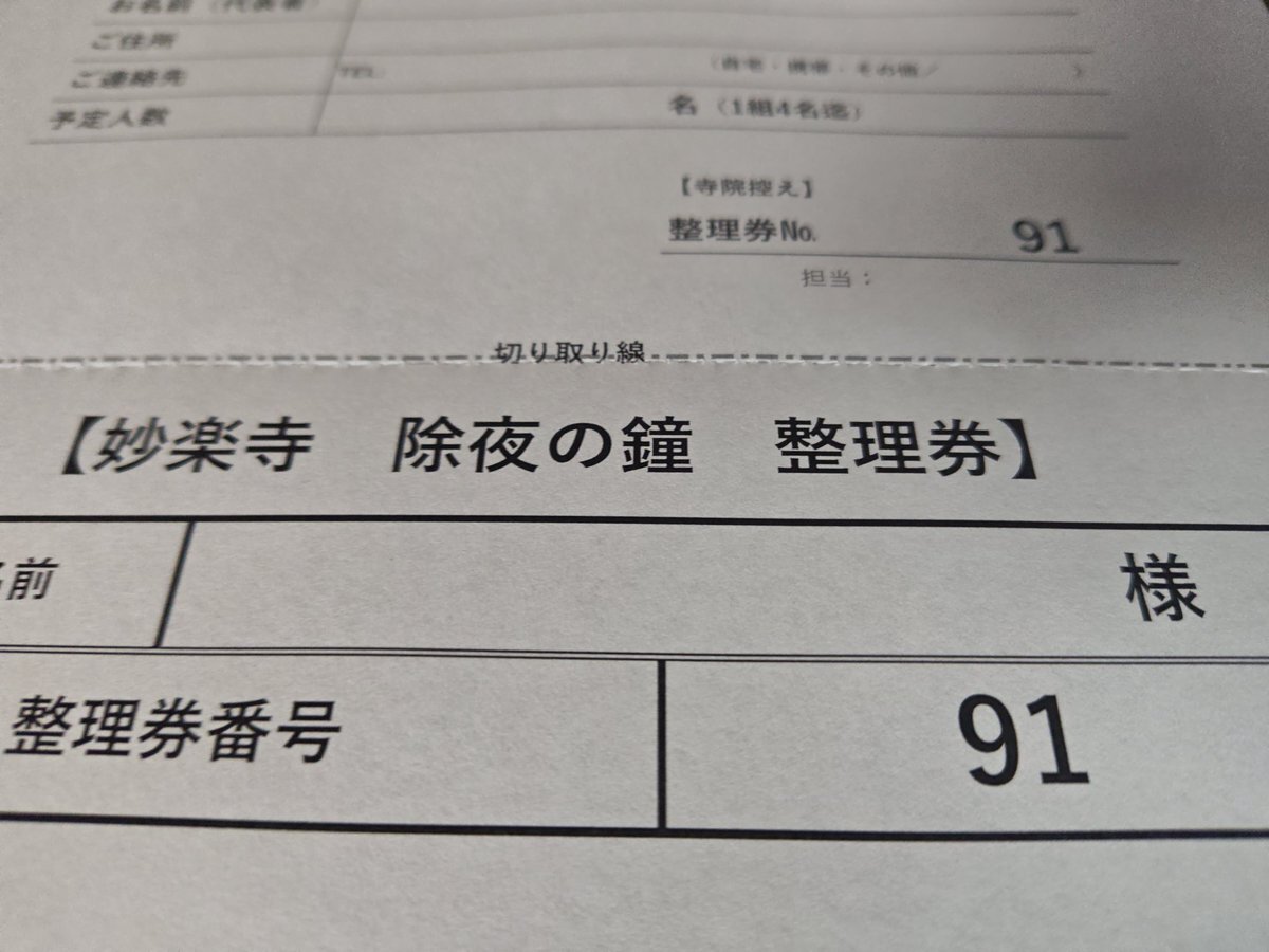 パラパラと雨が降ってきました 除夜の鐘整理券の申込状況ですが 現在90番代に入りました (108番で締切となります) 今年はお申し込みが早いようです もしご希望の方は ご足労おかけしますが 当寺 寺務所をお訪ね下さい #妙楽寺 #除夜の鐘 #整理券 pic.x.com/VpFQWNGHWZ