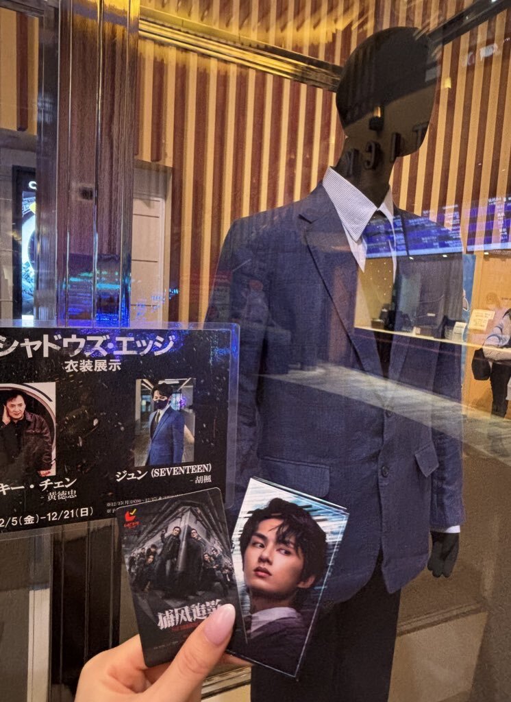 残念ながら第二段の特典は終了してたけど、たまたま衣装撤去のタイミングに着いたのでガラス越しでない衣装を少し見れたので満足!革靴の汚れでアクションの凄まじさが伝わってくる。肩広い!腰細い💯 #文俊辉 #シャドウズ・エッジ pic.x.com/LwWrHd5ErI