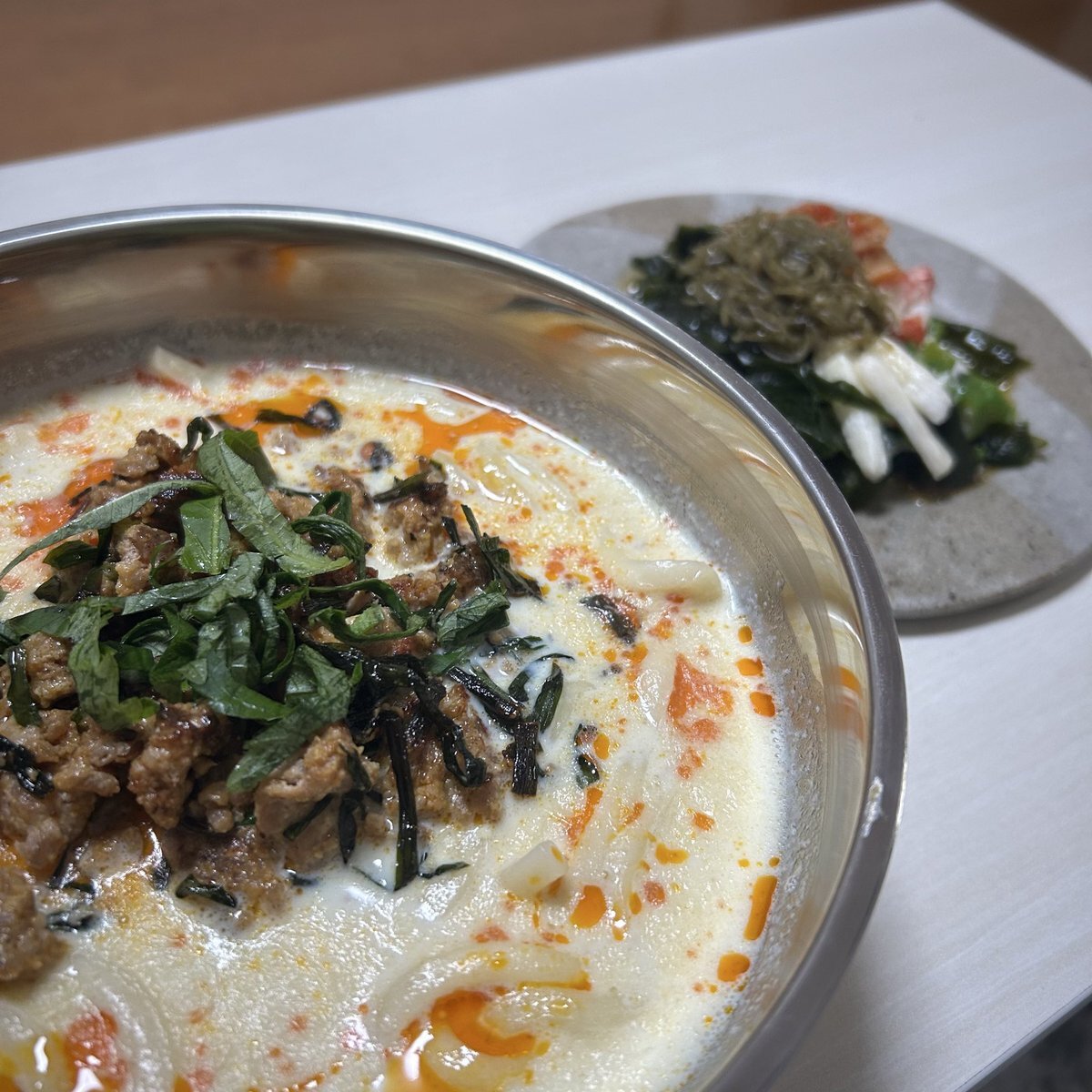 今日は一段と寒いから温かい豆乳坦々うどん🎀 この後ニラ足りなくて大量に入れた🥹🫶 坦々うどん大好き💭 そしてデザートは大好きなシャインマスカット💗 #料理好きな人と繋がりたい #料理好きさんと繋がりたい #料理好きと繋がりたい #料理好きな人とつながりたい #料理記録 #料理写真 #料理女子 pic.x.com/g8QIleM1Gq