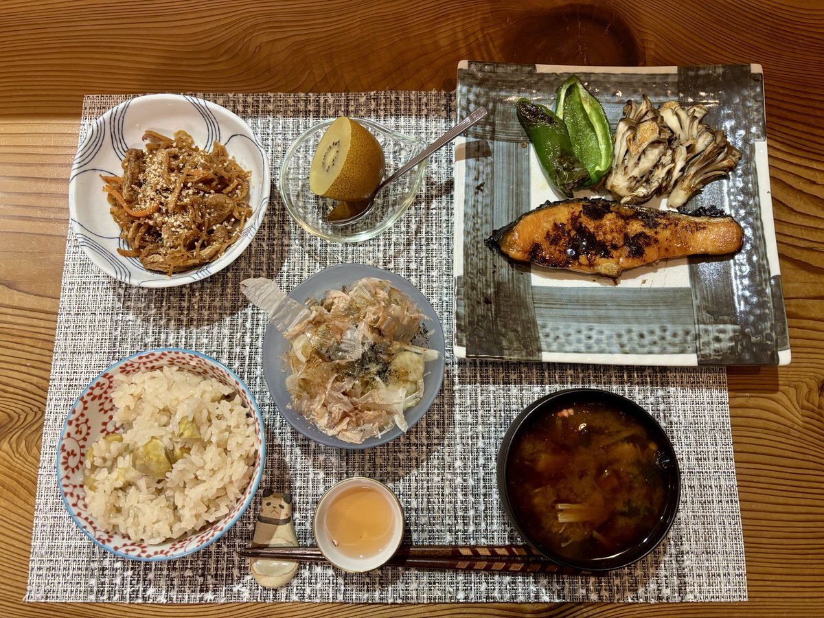 10/19 #ぴ飯。 ・炊き込みご飯 ・煮物 ・サラダ 寒いとさ、必然的なこーゆーの食べたくなるよね💦 #料理 #料理写真 #料理記録 #料理でハッピー #料理好きな人と繫がりたい pic.x.com/I2ZOjaJ2Vs
