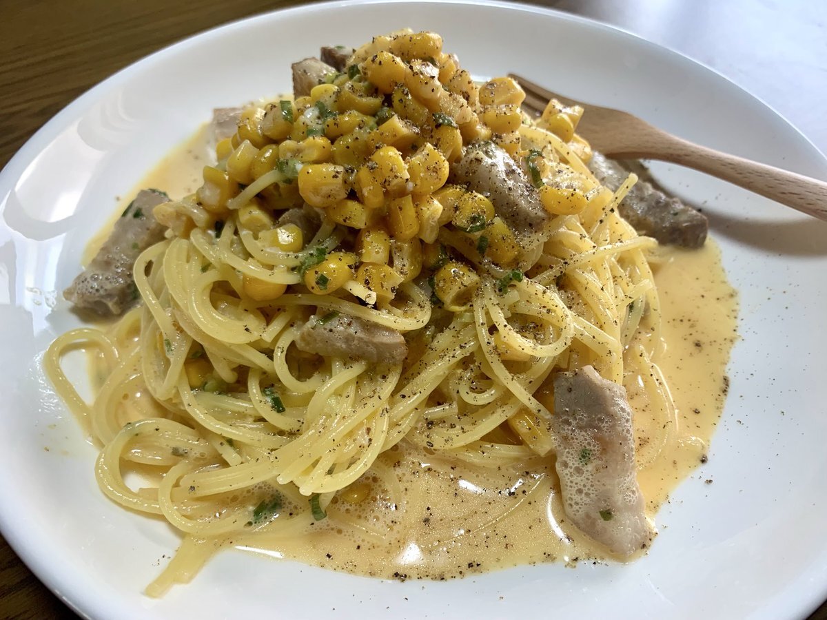 本日のお昼ごはん🍝 【自家製パンチェッタとねぎコーンのカルボナーラ】 #ミオんちのごはん #おうちごはん #料理 #料理写真 #料理男子 #料理好きな人とつながりたい #料理好きと繋がりたい pic.x.com/lmL4R2qPNK