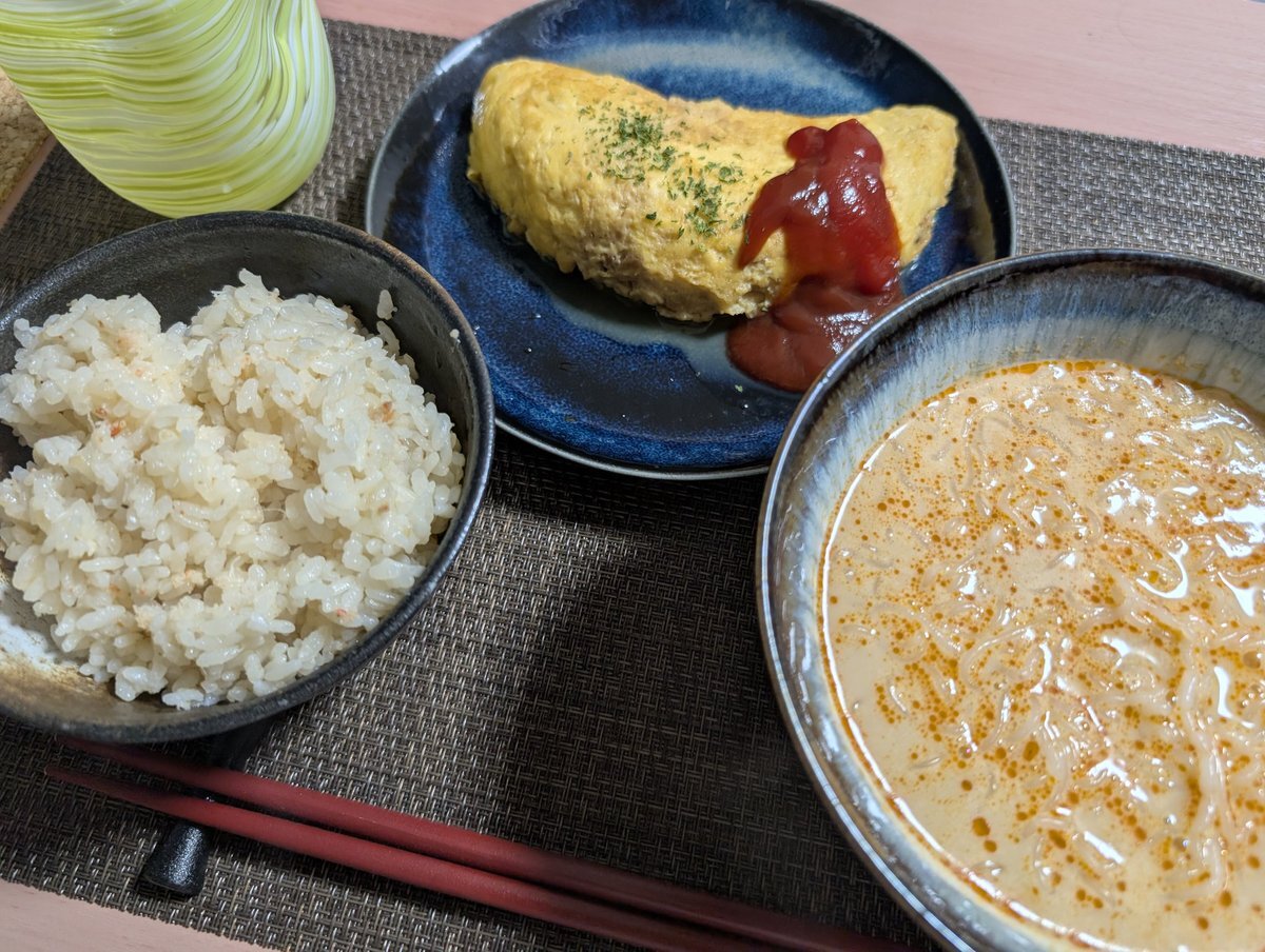 坦々麺風豆腐麺、オムレツ、 カニ缶炊き込みご飯 #自炊 #自炊記録 #ひとりごはん #おうちごはん #料理 #料理写真 #料理好き #料理好きな人と繋がりたい pic.x.com/oStAn0SX47