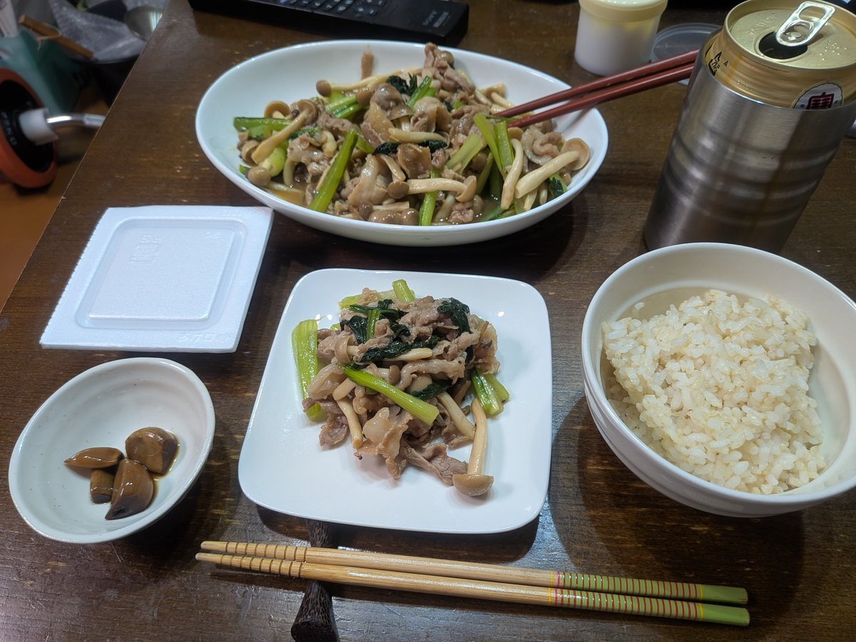 お疲れ様です。夏野菜がまだあるので、今日は気持ち野菜多めにしました。痛む前に使わないと…と焦った結果いつもより品数が豊富です笑。食べ終わったら原稿整理に戻ります。2月刊の本ですがなかなか面白いので、早く本にしたいです。 #料理 #料理写真 #料理男子 #写真好きな人と繋がりたい pic.x.com/Y7Mln3W5Wm