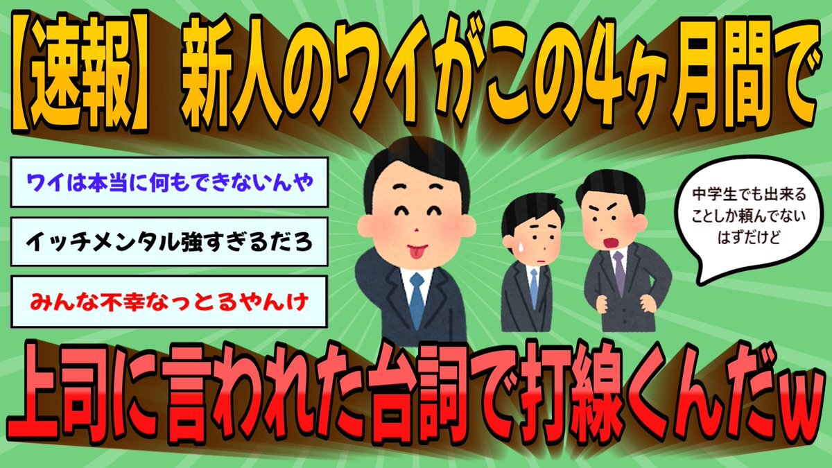 【2chまとめ】【速報】新人のワイがこの4ヶ月間で上司に言われた台詞で打線くんだwww【ゆっくり実況】アップロードしました!#2ch面白いスレ #新人 #上司 youtube.com/watch?v=b6dD6_… pic.x.com/QKxmuVq7OV