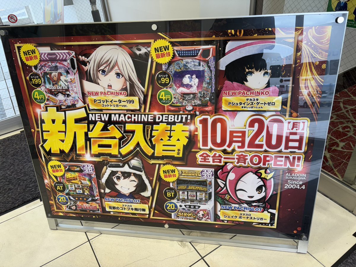 ダイナム石川かほく店です。この度、Xを始めました。主にかほく店の情報発信をしていきますので、どうぞよろしくお願いします😆早速ですが本日10月20日は新台入替17:00開店(予定)となっております!皆様のご来店心よりお待ちしております😊 #ダイナム #新台入替 #初めてのツイート pic.x.com/qDh24hH0BM