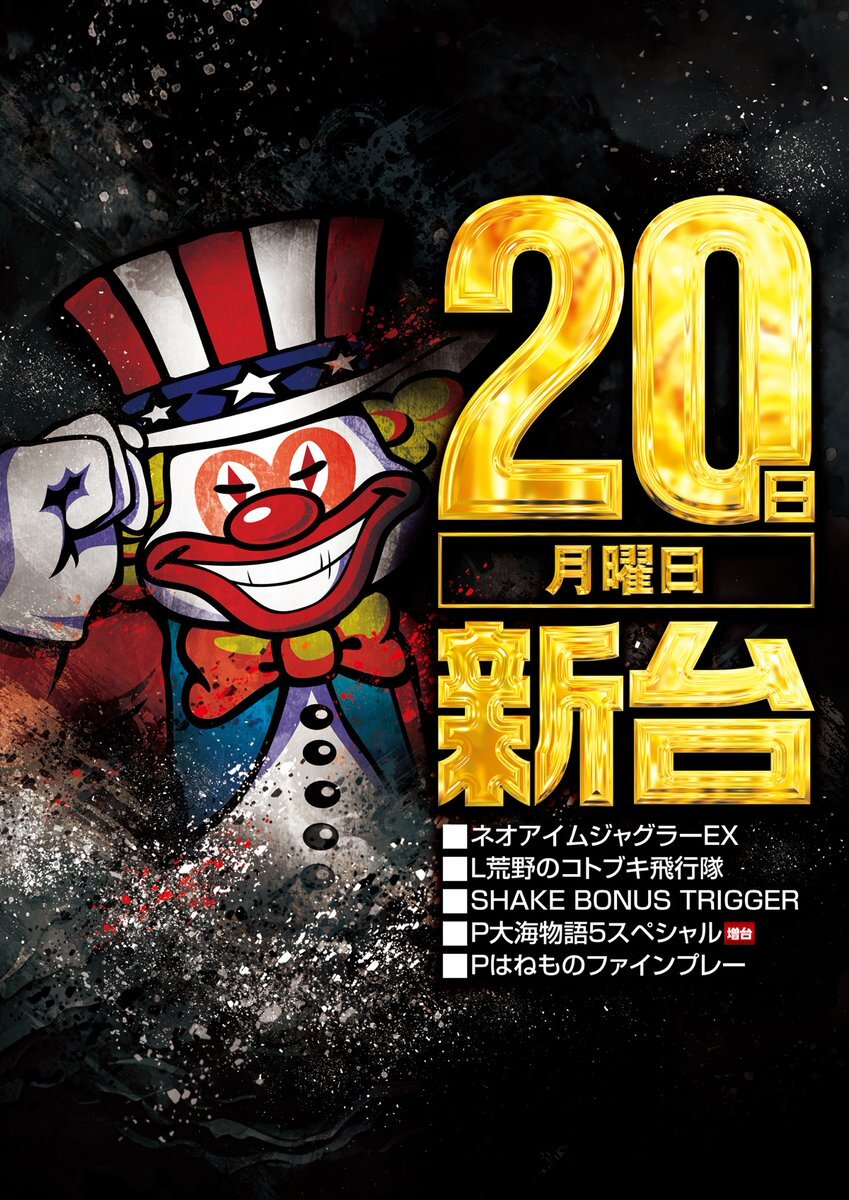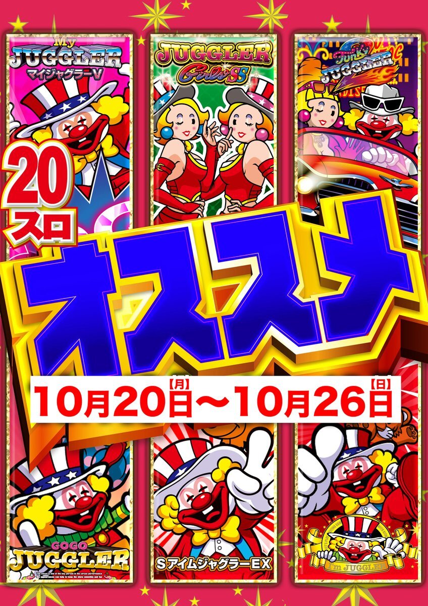 新たな週の始まり🙋 本日20日は新台入替初日㊗️ バイーーーン🔥🔥 【ノッチさん来店】 @segumax7 狙いの機種は果たして⁉️ ジュラクの新台入替初日 にご期待くださいませ🙌 #ジュラク #10月20日 #ノッチさん #新台入替 #ボーナストリガー #沖海6 pic.x.com/R5a0sF8M9H
