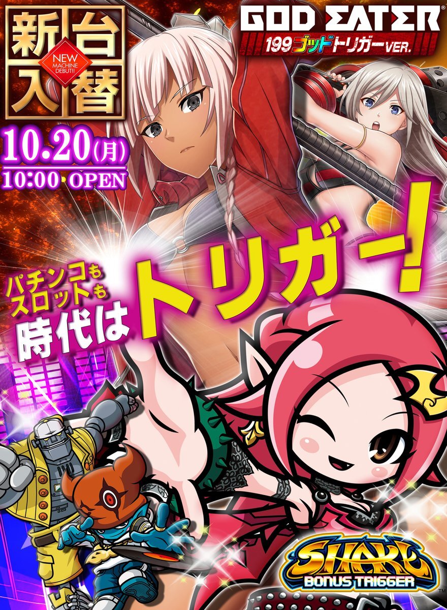 おはようございます! 本日 #新台入替 で導入初日です🎊 4⃣パチ ・Pゴッドイーター199ゴッドトリガーVER. 2⃣0⃣スロ ・SHAKE BONUS TRIGGER この機会にぜひどうぞ♪ pic.x.com/ytVgNQGQ1r