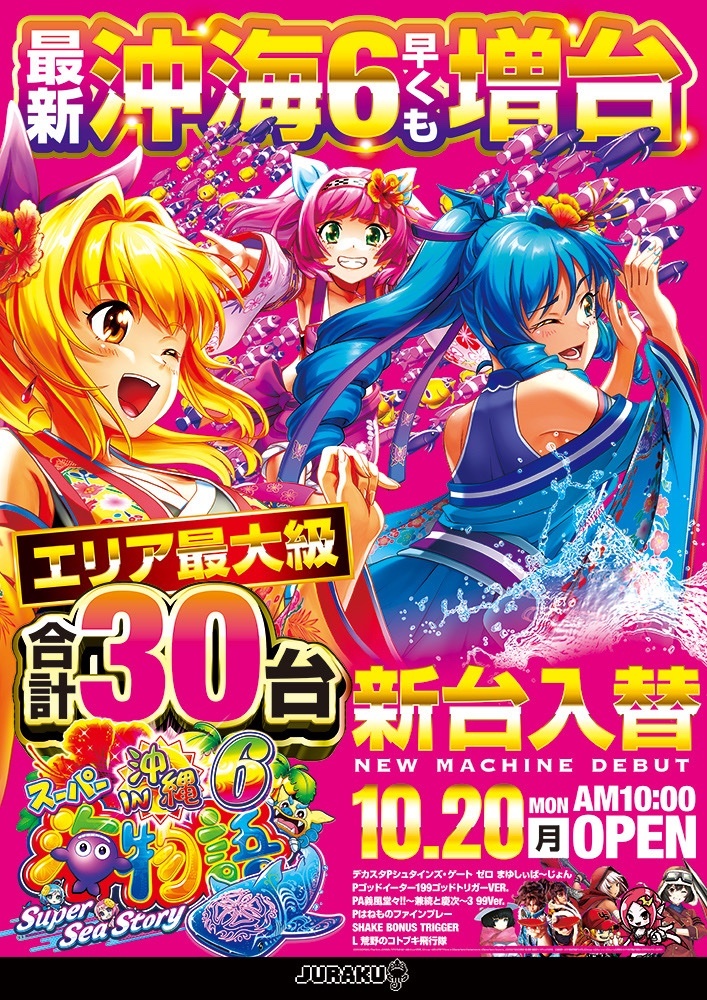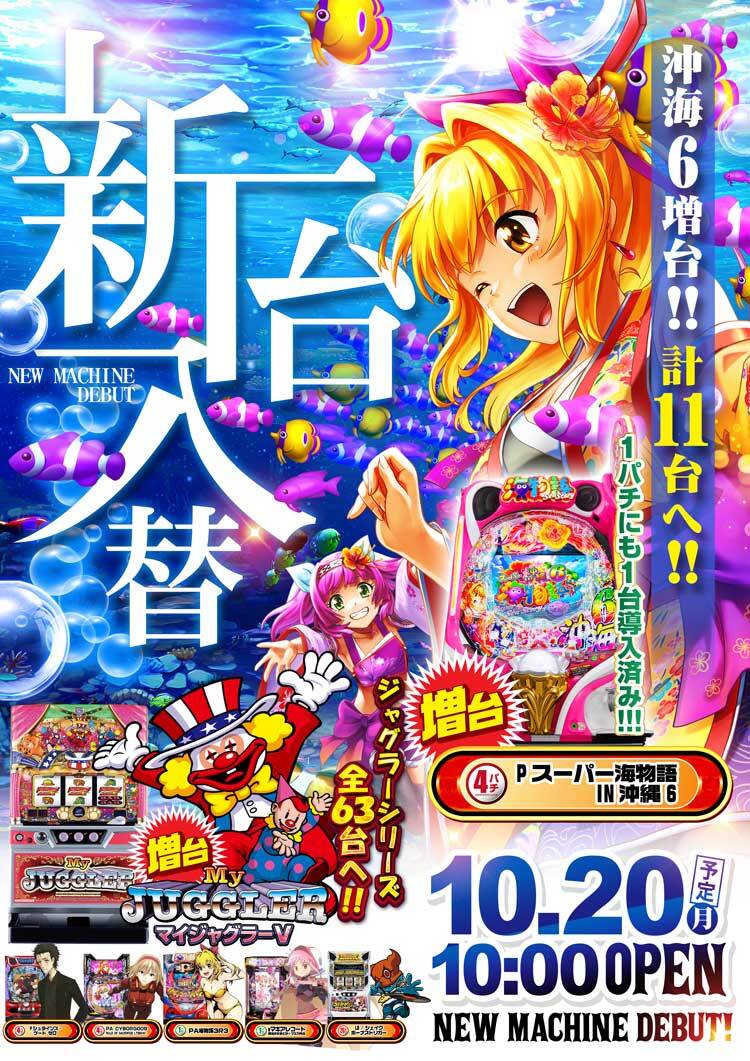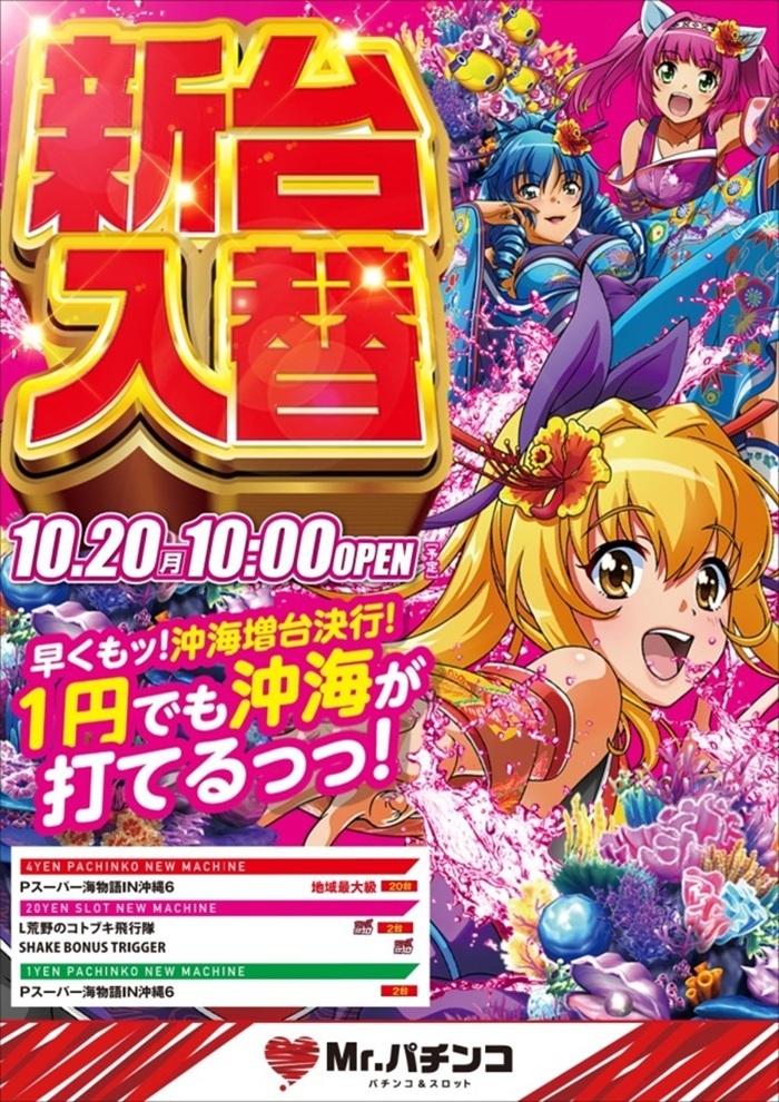 おはようございます☀️ 本日、10月20日 (月)は 💥新台入替💥 沖海6増台‼️計11台へ✨ マイジャグラーⅤ増台✨ 新台入替初日はドキわくで楽しもう❤️ 沖海6は1パチでもご遊技頂けます🥰 みなさまのご来店❗️ お待ちしております‼️ #新台入替 #パチンコ #スロット #ジャグラー #沖海 #スマパチ pic.x.com/URNbiYkUYP