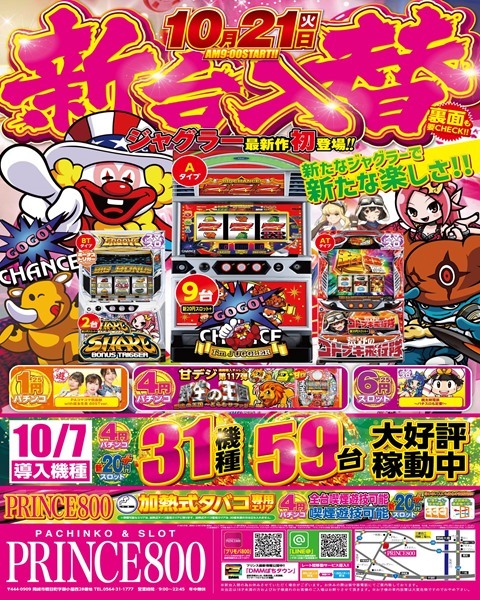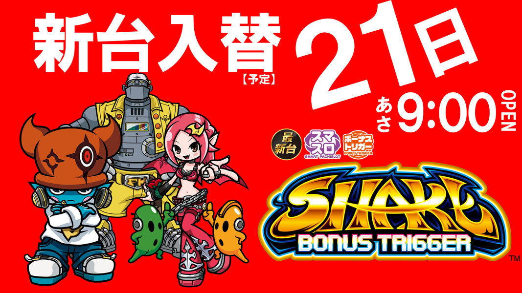 明日10月21日は新台入替! 20スロ SHAKE BONUS TRIGGER を導入致します! 皆様のご来店心よりお待ち致しております。 #スマスロ #森町 #新台入替 #shake pic.x.com/fTiTfhPaQ7