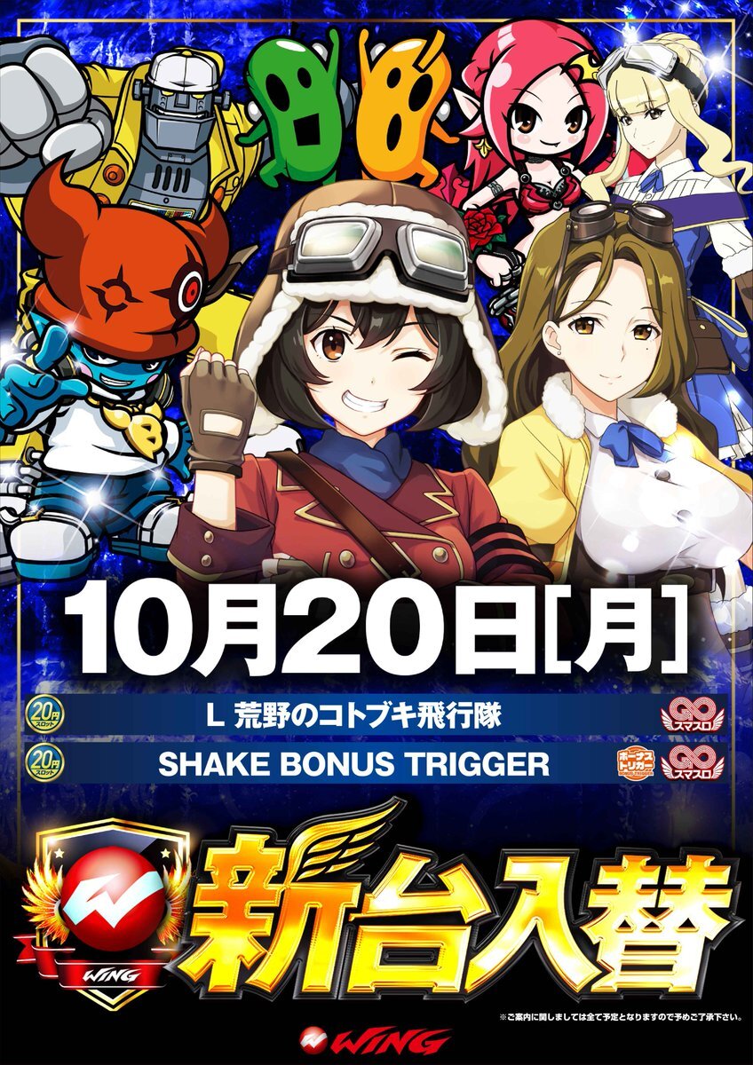 おはようございます 本日10月20日(月) ✨#新台入替#20円スロット L 荒野のコトブキ飛行隊 SHAKE BONUS TRIGGER 💙オススメ機種💙 【大海物語5スペシャル】 ぜひ #ウイング橋本店 にお越しください。 ご来店お待ちしております(∩´∀`)∩❤️ pic.x.com/1qkcK2TNOM