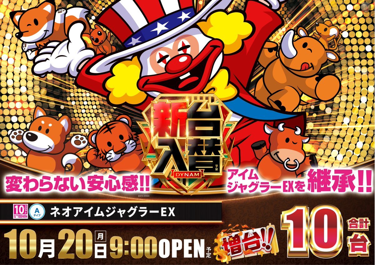 10月20日(月) 新台入替 🕰️抽選時間 16:00 🌟導入機種 S ネオアイムジャグラー L 新鬼武者3 L 荒野のコトブキ飛行隊 S ディスクアップ2 P リング 呪いの7日間2 P JAWS3 P モンハンライズ P 新・遠山の金さん PA 真・暴れん坊将軍 #ダイナム #新台入替 pic.x.com/gL1qFWT2Nf
