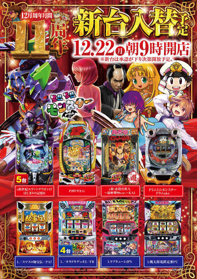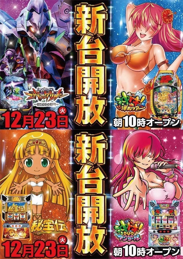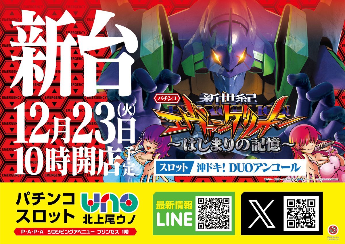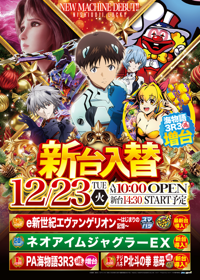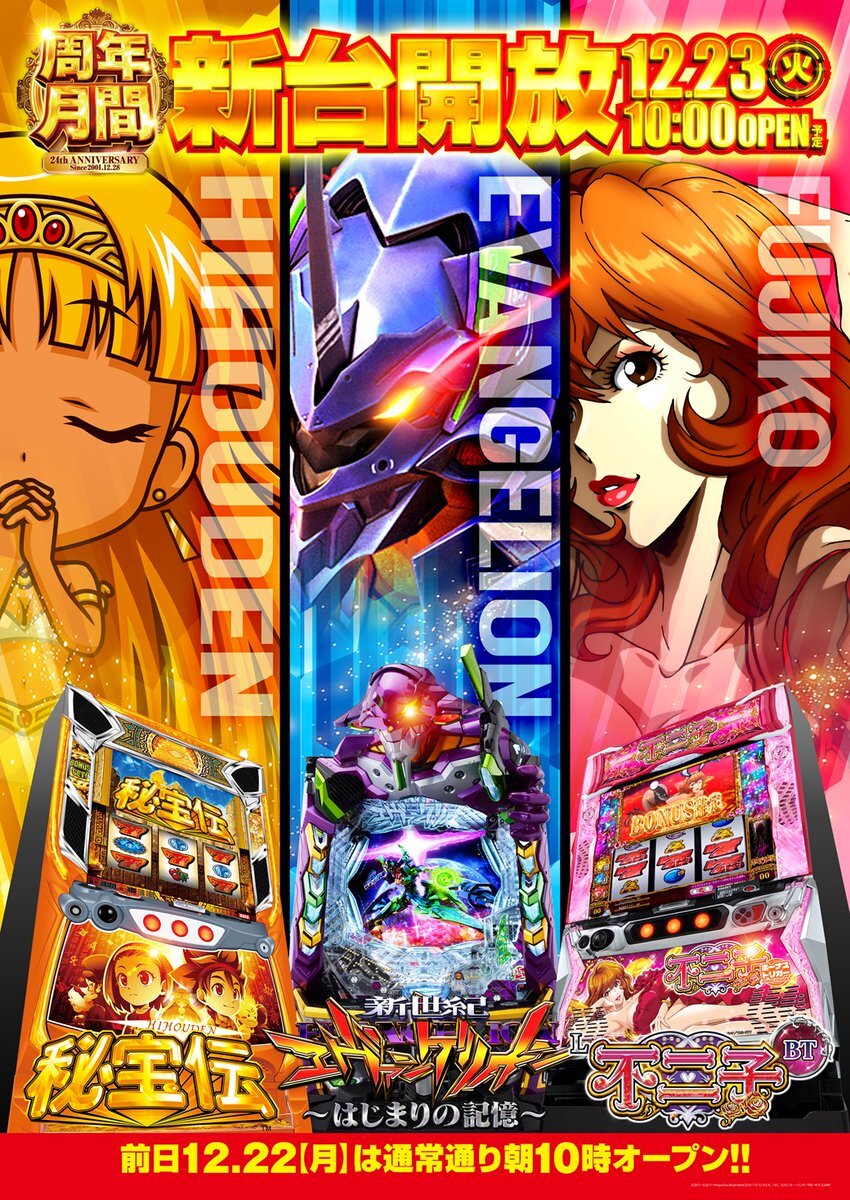 こんばんは✋ 12月23日(火)新台入替17時オープン‼️ 25時まで延長営業🌟 皆様のご来店お待ちしております😊 #新台 #エヴァ17 pic.x.com/sOft6cNkAF