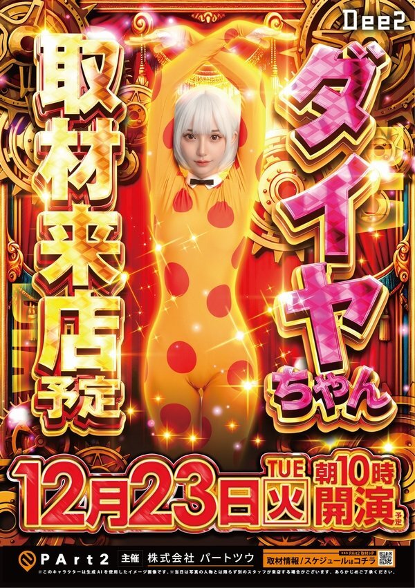 こんばんはDee2店長です😎 明日12月23日⏰️朝10時開店⏰️ ⚡️⚡️新台開放&初取材⚡️⚡️ 話題の最新機種が遂に始動…‼️ さらに‼️明日はダイヤちゃん取材🎪 最新機種✖初取材で朝イチから全力で お出迎え致します🔥🔥 🚨抽選は朝9時50分🚨 #新台 #Dee2 #初取材 pic.x.com/nF8LrIa3Bh