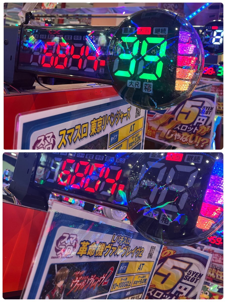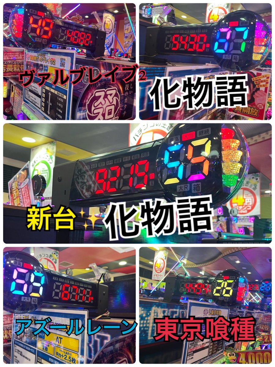 お疲れ様です☺️ 本日20円スマスロ盛り上がってました❤️‍🔥 新台✨️化物語 9,000ptover、5,000ptオーバー😆✨️ 他アズールレーン6,700pt! 東京喰種、vvv②4,000ptover🎉 5スロ東リベ、vvv②6,000ptオーバー✨️ パチンコも優秀機多数! 明日9時オープン😊 #サンキョー #新台 #ハナハナ pic.x.com/DtBMlEMeek