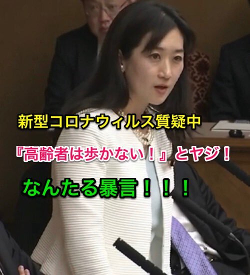 返信先:@horiris◆落選させたい議員- #新型肺炎 編◆ 松川るい 自民党 参院大阪選挙区 ◉理由◉#新型肺炎 高齢者への感染防止策のへの質疑中、『高齢者は歩かない!』などと声を上げ、高齢者は歩かないので感染しないと言わんばかりのヤジを飛ばした。pic.x.com/GcAjOxIGFa