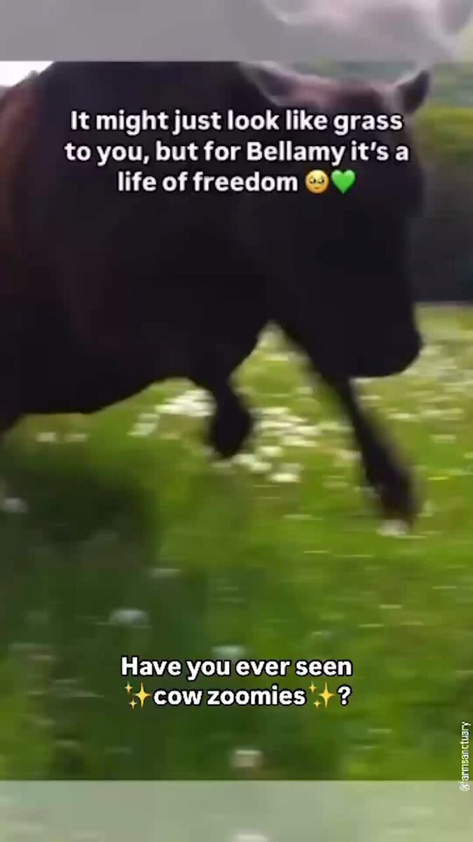 This rescued cow, Bellamy, experiencing grass & the outdoors for the first time is AMAZING. Please RT!! 🧡 [Farm Sanctuary]