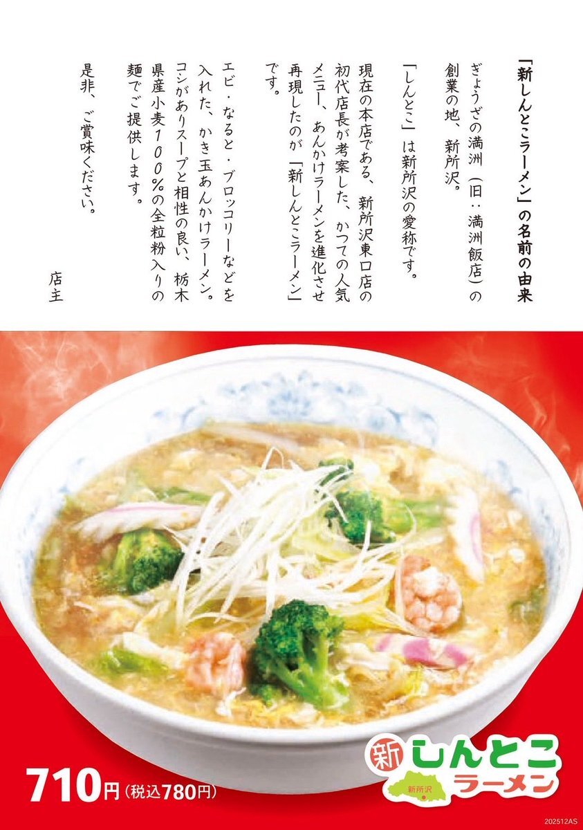 大好評 『新しんとこラーメン』 「しんとこ」は創業の地「新所沢」の愛称です。 この度、本店(新所沢東口店)の 初代店長が考案したラーメンを リメイクし、ご提供しております! やさしい味わいながらも 全粒粉入り中太麺で食べ応えあり! 温まりますよ☺️ #ぎょうざの満洲