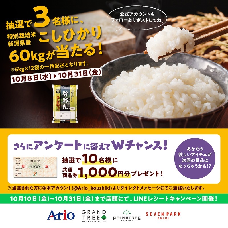 私が次回のキャンペーンで欲しいものは【 #旅行券 】 特別栽培米新潟県産こしひかり60kg、またはセブン&アイ共通商品券が抽選で当たる #お米60kgが当たるフォローリポストキャンペーン は10/31迄 詳細は👇 akinodaishukakusai.ownly.jp/join/35662 @Ario_koushiki pic.x.com/JwnyEjq8t4