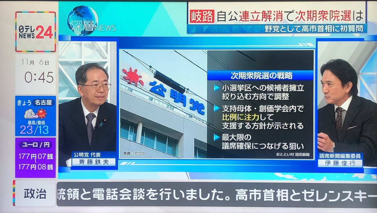 公明党は今後は比例に注力してって、まるで今までやってなかったみたいな(笑) 党員全体が高齢化で減っていってるんじゃないの? そんな甘い戦略で、自民党を敵に回して勝ち目あると思うの? #深層NEWS #日テレNEWS24 pic.x.com/AyMhQYCgOH