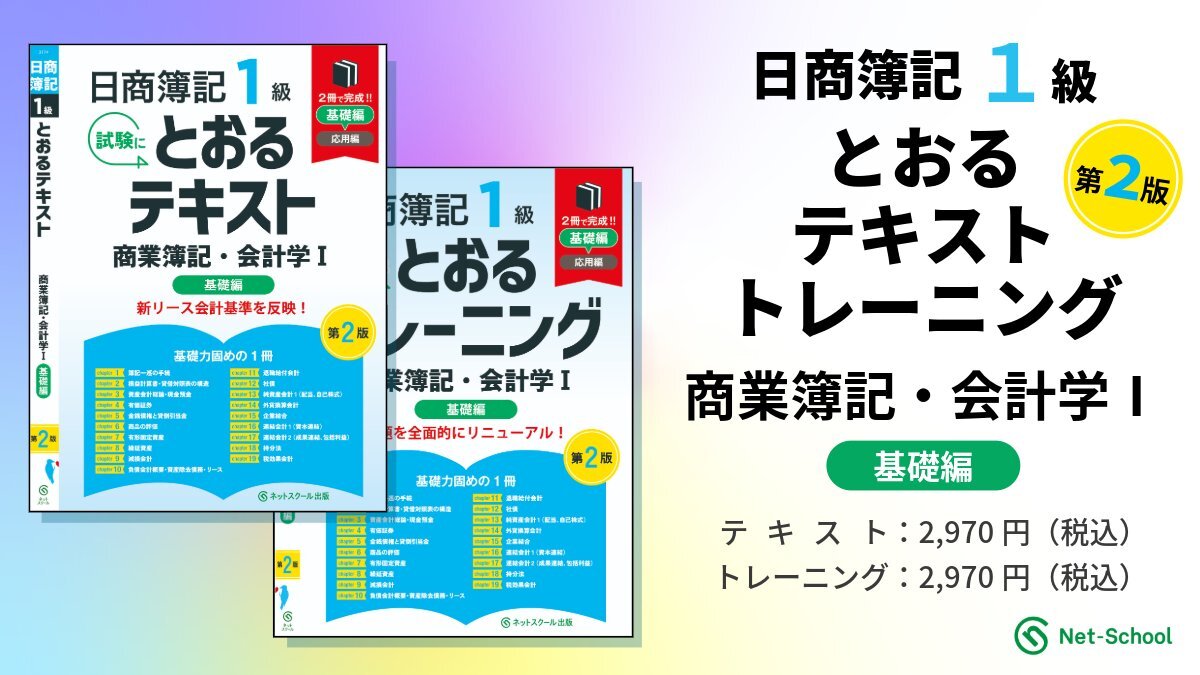 【好評発売中💡】 日商簿記1級 とおるシリーズ テキスト/トレーニング 商業簿記・会計学Ⅰ基礎編【第2版】 🔽ご購入はこちらから テキスト:amzn.asia/d/iPUp6gO トレーニング:amzn.asia/d/geyjUS7 #ネットスクール #日商簿記 #簿記1級 pic.x.com/yoB9Tda7jU