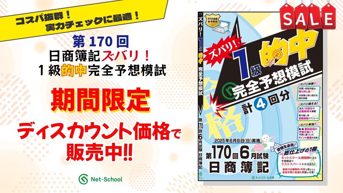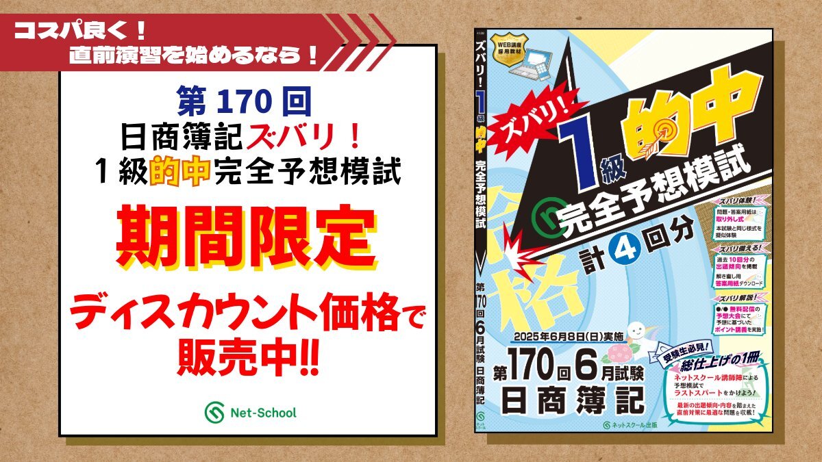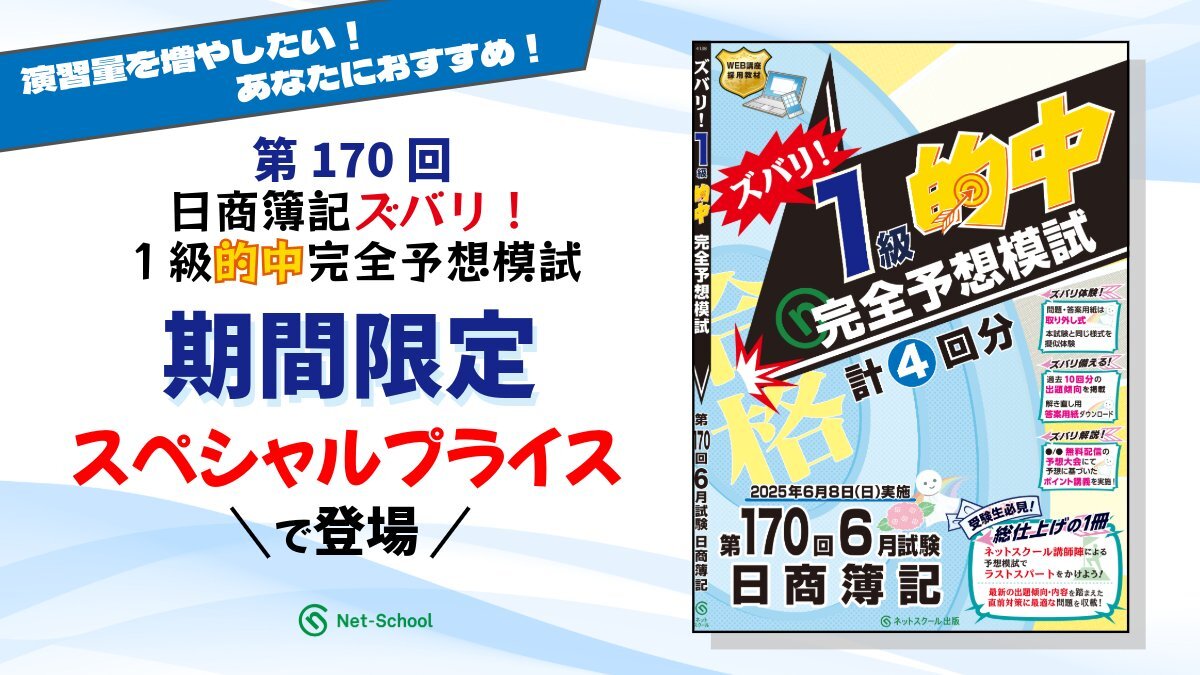 昨日行われた第171回日商簿記検定1級の予想配点付解答速報と、中村先生・藤本先生による各科目の解説動画は、現在も下記特設サイトで公開中です。 試験当日にご覧になれなかった方も、当日の記憶が残っているうちに、ぜひご覧ください。 #日商簿記 #日商簿記1級 net-school.co.jp/event/nis/kait…