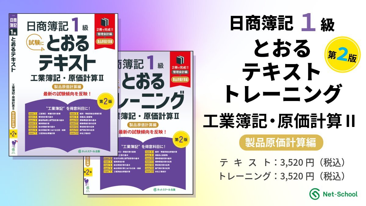 【好評発売中💡】 日商簿記1級 とおるシリーズ テキスト/トレーニング 工業簿記・原価計算Ⅱ製品原価計算編【第2版】 🔽ご購入はこちらから テキスト:amzn.asia/d/8dwVvwA トレーニング:amzn.asia/d/6AkZ3ox #ネットスクール #日商簿記 #簿記1級 pic.x.com/fy7C80c4XG