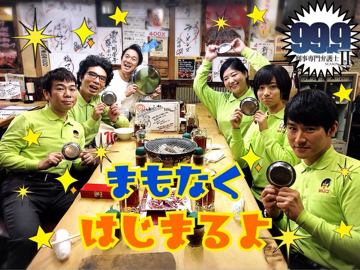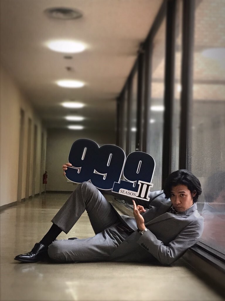 今夜『99.9』第8話。そして現在、最終回を絶賛撮影中。ついさっき香川さんの突発的な顔芸に、松潤くんが「くひぃっ!ごめん!」と吹き出してNGになったよ。ズキュン!では後ほどテレビでお会いしましょう。 #日曜劇場999 pic.x.com/5tRHYxxRYK