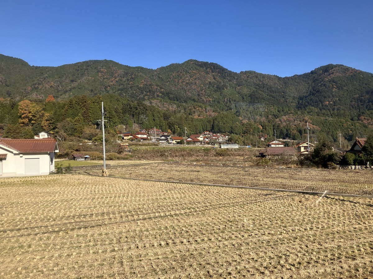 #フォーブル緑ヶ丘発大原駅行き 県道と #吉山川 の間には、棚田と里山が広がる。所々に家々や柿の木がみられる。人の営みがより感じられるという点で、溝口よりも「 #日本の原風景 」っぽい。 美山や白川郷と違って、ここには茅葺き屋根はないけど、photogenic という点では負けていないと思う。 pic.x.com/RTKz0ydke0
